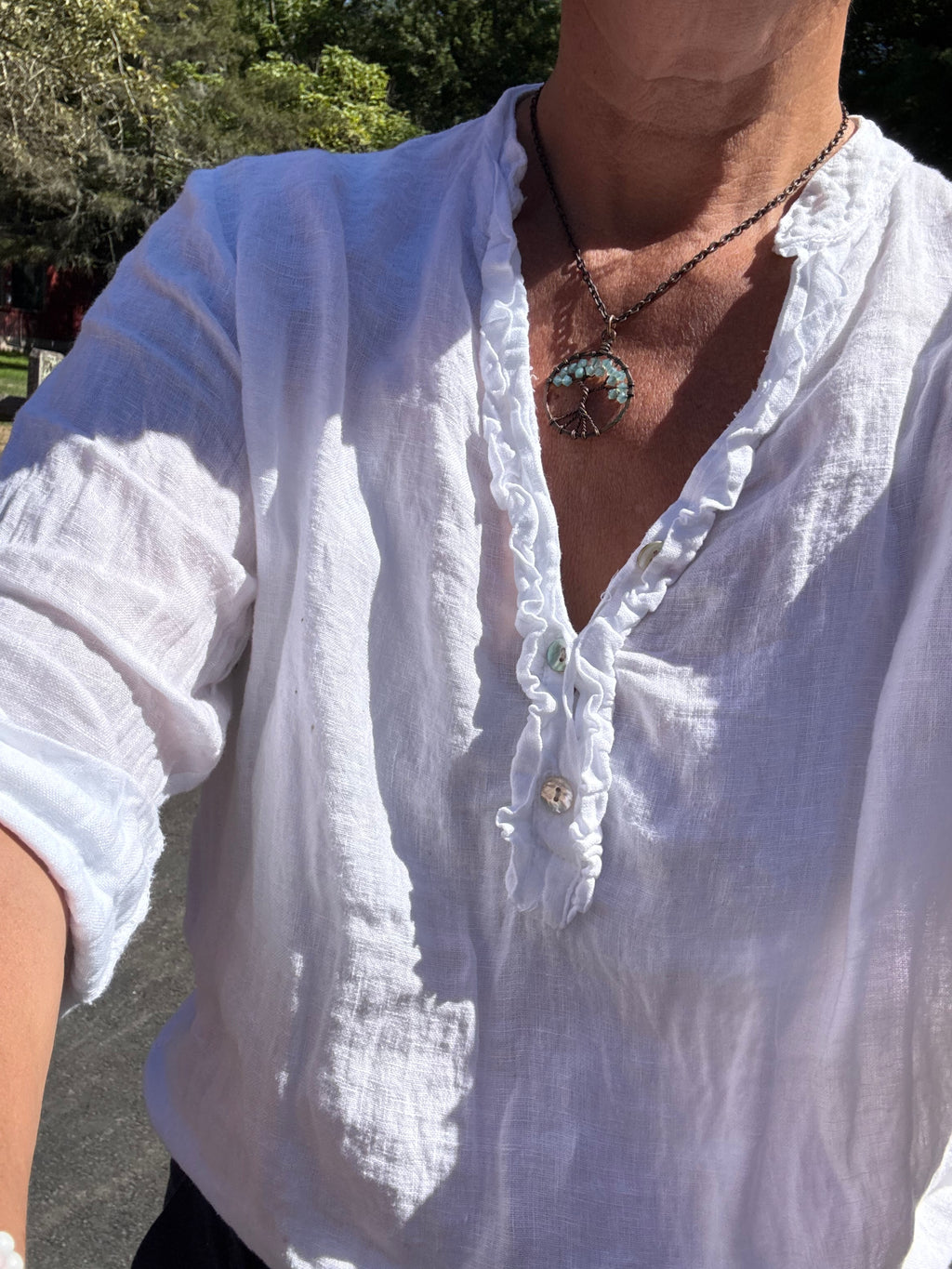 Verona Linen long sleeve ruffle shirt